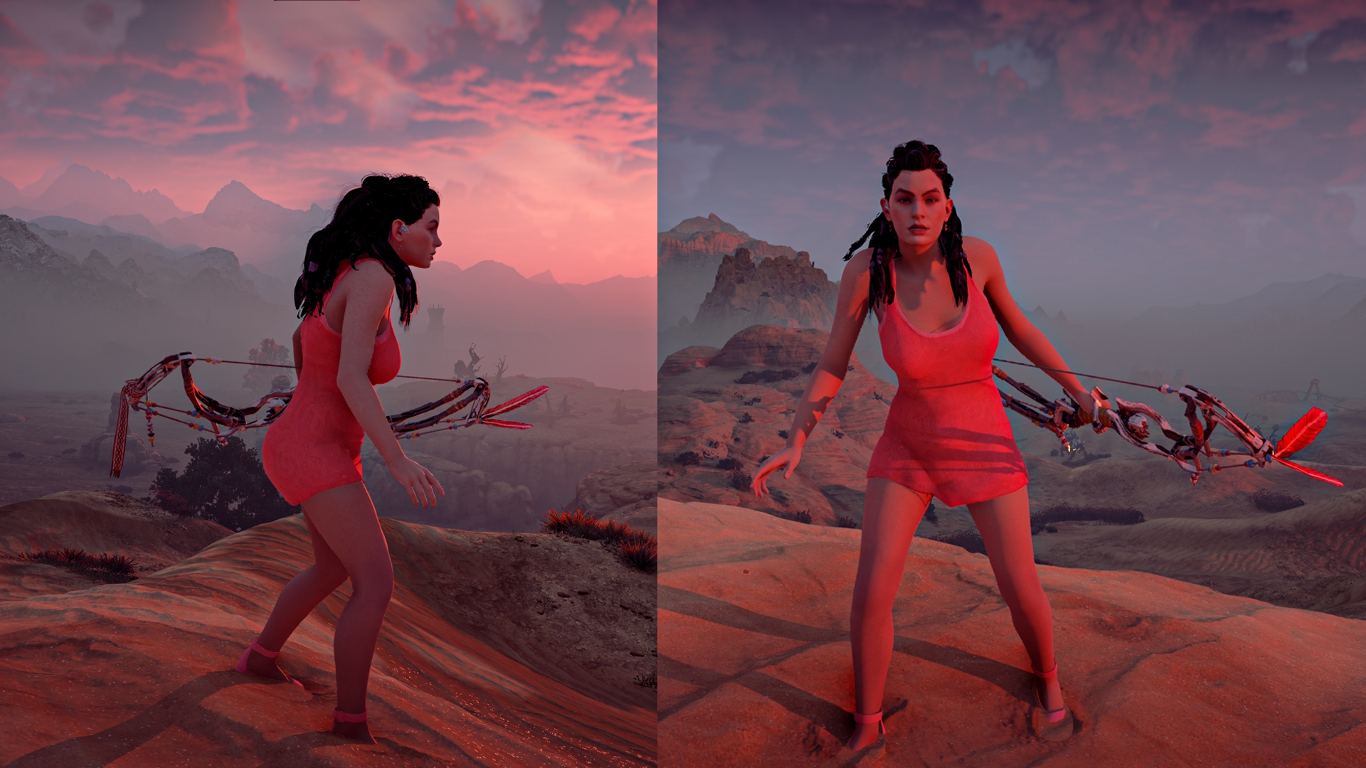 This mod will change the nora brave outfit to a red evening dress outfit.