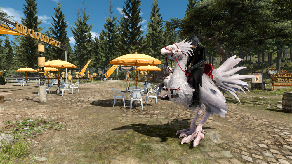 An albino chocobo with a cherry red saddle. A reskin of my last mod.